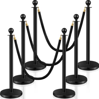 Black/Golden Crowd Control Stainless Stanchion Posts Steel Welcome Pillars Queue Line Rope Lanyards Barriers