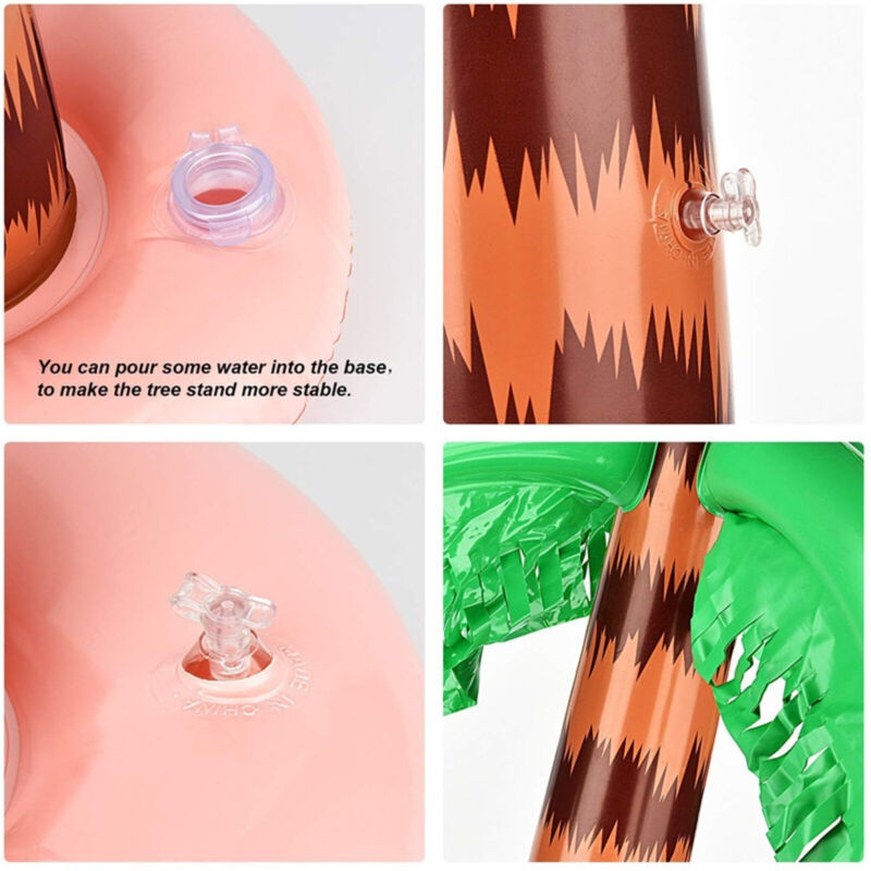 Inflatable palm trees, bases can be filled with water or sand to weight them down